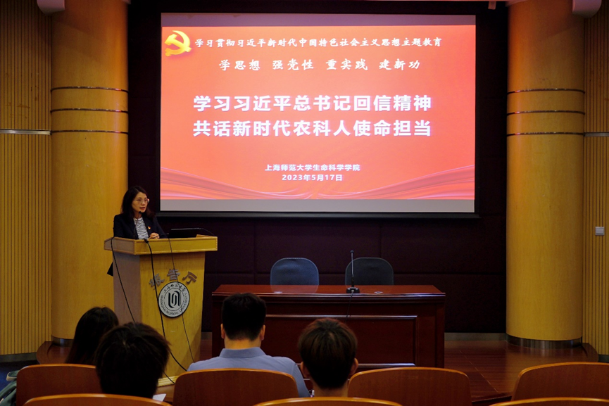 5月17日下午,学院党委开展“学习习近平总书记回信精神 共话新时代农科人使命担当”专题学习,党员教师、农学专业学生、毕业生共讲党团课,深入学习领会习近平总书记给中国农业大学科技小院学生重要回信精神,贯彻落实主题教育重要部署,激励生科学子立足专业特点、发挥学科优势,厚植爱农情怀、练就兴农本领。院党委委员戴绍军教授作专题领学。他强调,要深刻领会习近平总书记重要回信的丰富意涵,增长“走进乡土中国深处,深刻理解什么是实事求是、怎么去联系群众、‘自找苦吃’”的精气神。学院党委副书记、副院长谢月恒作总结发言。她希望生科青年在所处领域把“根”扎实,把专业技能练“硬”,用实际行动勇担时代责任,为加快推进农业农村现代化、全面建设社会主义现代化国家贡献生科青年的智慧和力量。