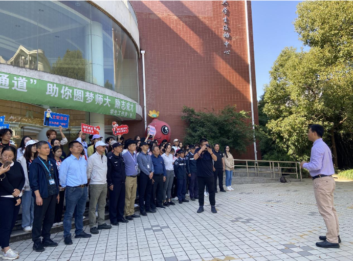 ★倡导“规范停放,安全骑行”校园活动启动 11月1日上午,保卫处在奉贤校区管委会的支持下,联合学工部、资产处、后勤、团委等相关职能部门和学生志愿者在奉贤校区大学生活动中心举行倡导“规范停放,安全骑行”校园宣传启动仪式。仪式上,保卫处副处长武海潭对活动的工作安排进行了说明,并强调了宣讲和引导相结合的重要性,以促进学生规范停放和安全骑行。校办副主任陆伟则希望各部门能够密切配合,为奉贤校区非机动车的规范停放提供建议和支持。