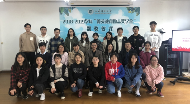 ★上海师范大学菁英教育励志奖学金 11月11日下午,上海师范大学菁英教育励志奖学金颁奖仪式在奉贤校区大学生活动中心204室举行。菁英进修学校、校教育发展基金会、资助管理中心相关人员、获奖学生代表出席了此次颁奖仪式。“菁英教育励志奖学金”是上海菁英进修学校为支持上海师范大学的人才培养和教育事业的发展而设立的,主要用于奖励相关学院的大二、大三年级学生。