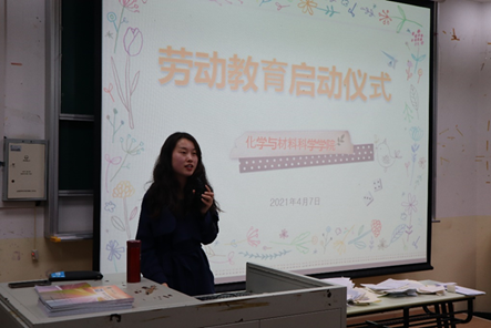 4月7日,化材学院于奉贤校区4D200举行了2020级劳动教育启动仪式。“勤劳”是中华民族的传统美德,大学生需要学会劳动技能,爱劳动,爱劳动人民,在实践中锻炼,培养正确劳动价值观,实现德智体美劳全面发展。学院即将在4月19-30日开展2020级全体学生劳动体验活动,承担宿舍值班员、宿舍保洁员、教学楼节能督导员等岗位。