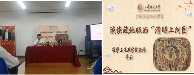 ★少数民族文化沙龙举行 4月7日下午,由学工部主办的少数民族文化沙龙之“谈谈藏地版的清明上河图”在奉贤校区大学生活动中心204室开展。本次沙龙由学工部副部长谢青主持,特邀请上海师范大学牛宏教授主讲。此次讲座作为上师大学工部主办的资助育人活动之一,要求各民族同学在党的领导下,加强民族团结、实现中华民族伟大复兴的中国梦,进一步培育中华民族共同体意识,集各方合力共同打造中华民族美好未来尽自己一份力量。