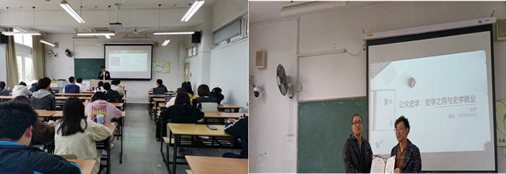 4月14日下午,学院世界史专业陈慧本老师邀请四川大学历史文化学院的张涛老师、著名公众历史类微信公众号“海边的西塞罗”的主理人王昱老师,分别在奉贤校区三教201举办了公众史学的专场讲座。张涛老师主讲题目为“公众史学:史学之用与史学就业”。王昱老师主讲题目为“学历史该怎样谋生——假如你不想钻象牙塔的话”。