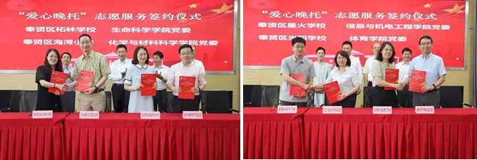 5月31日上午,上海师范大学“我为群众办实事”——师范专业“爱心晚托”志愿服务行动启动仪式举行,上海师范大学有关师范专业学院和徐汇区、奉贤区8所学校签署了合作意向,其中奉贤区星火学校、光明学校、柘林学校、海湾小学分别与上海师范大学信息与机电工程学院党委、体育学院党委、生命科学学院党委、化学与材料科学学院党委签约,携手推进小学生课后服务工作。上海师范大学党委书记林在勇,党委副书记、副校长葛卫华,副校长张峥嵘,奉贤区教育局副局长万国良,徐汇区教育局副局长钱佩红等出席启动仪式,并见证签约。