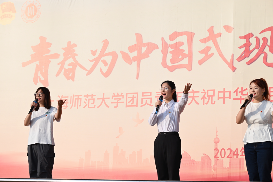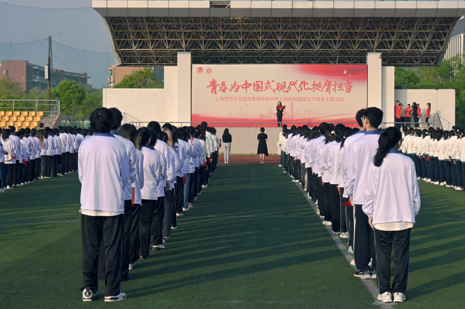 ★上海师范大学团员青年庆祝中华人民共和国成立75周年主题升旗仪式举行 9月30日,上海师范大学在奉贤、徐汇两校区同步举行“青春为中国式现代化挺膺担当”上海师范大学团员青年庆祝中华人民共和国成立75周年主题升旗仪式。7时整,五星红旗在校国旗护卫队升旗手的手中展开,全体师生庄严肃立,目光如炬,齐声高唱中华人民共和国国歌。校团委书记程雪与研究生团工委书记李佳柠分别在奉贤、徐汇两校区作师长寄语,号召着师大学子以勤为舟,以德为帆,以青春之我,奋斗之我,强化使命担当,实现与中国式现代化的双向奔赴。