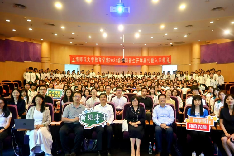 ★教育学院 2024级本科新生开学典礼暨入学教育顺利举行。9月27日,2024级教育学院本科新生开学典礼暨入学教育隆重举行。典礼在一段精心制作的迎新视频中拉开序幕,视频展示了大一新生朝气蓬勃的青春活力。学院党委书记徐晓明勉励同学们涵养家国情怀、秉承实干精神、追求卓越成长。来自2023级的钱谨渲作为老生代表,分享了自己大学生活的亲身经历,鼓励同学们多去尝试、勇于挑战,合理规划大学生活,践行师范生的使命与担当。副院长魏峰为新生们推荐了大学里的第一本专业书。最后,院长黄海涛教授用恳切的语言,从“大学、大学生、大学生活”三个方面展开为新生带来了入学第一课。