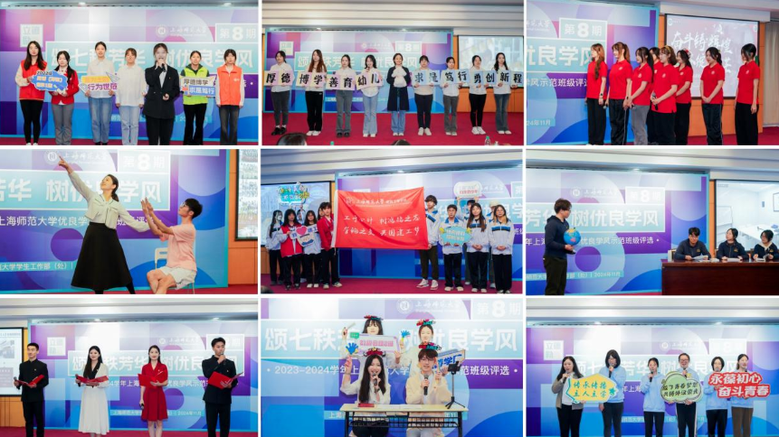 ★2023-2024学年优良学风示范班级评选活动举行 11月11日,学校第八期“立德励言”暨2023-2024学年优良学风示范班级评选活动举行。学校于今年10月启动了2023-2024学年“优良学风班级”及“优良学风示范班级”评建工作,全校55个班级积极申报。经过学院推荐、材料申报等环节,其中21个班级脱颖而出,入围校“优良学风示范班级”评选。活动现场,学生工作部部长朱政介绍了我校学风建设工作在“全员育人”“全过程育人”“全方位育人”中的长效举措和特色亮点,并对参与本次“优良学风示范班级”评选的班集体提出期待:希望大家能够展班风、铸班魂,赛出风格、赛出水平,引领优良学风、繁荣校园文化,展现出新时代师大学子的风采!