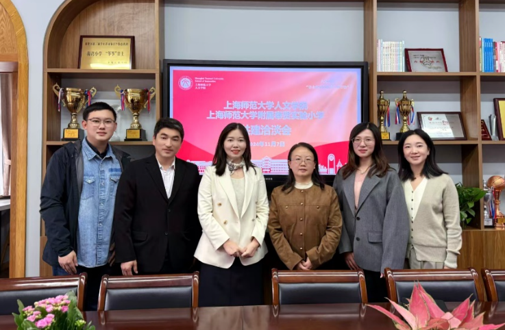 ★人文学院 人文学院一行赴师大奉贤附校开展共建洽谈和访企拓岗。11月7日上午,人文学院党委副书记、副院长陈重来,院工会主席、历史系副教授董大学一行先后赴上海师范大学附属奉贤实验小学、附属奉贤实验中学开展共建洽谈和访企拓岗活动。陈重来介绍了人文学院的基本情况,并就双方在未来“好书经典导读”课后服务项目、社团活动共建、特色德育项目孵化、学生综合素养提升等方面的合作进行了洽谈,期望能够在人才、活动、师资等资源上的优势互补,不断拓展人才培养平台和就业渠道。