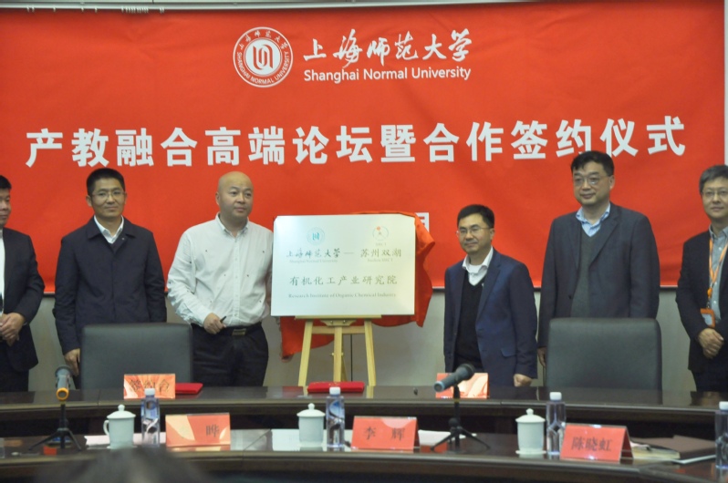 11月5日下午,上海师范大学化工学科产教融合高端论坛暨合作签约仪式在奉贤校区迎宾楼举行。副校长李晔,学校研究生院、科技处、人事处、资产与设备管理处、校教育发展基金会等各职能部门负责人,来自陕西省榆林市定边县、黑龙江省鸡西市梨树区等政府领导,上海低碳技术创新功能型平台负责人以及苏州双湖化工技术有限公司、扬州普立特科技发展有限公司、湖北兴发化工集团公司、上海立科新材料有限公司、上海京淼新材料有限公司、联化新瑞(北京)科技有限公司、上海簇睿低碳能源技术有限公司的董事长、总工程师,化材学院负责人,教师代表、学生代表等六十余人参加会议。