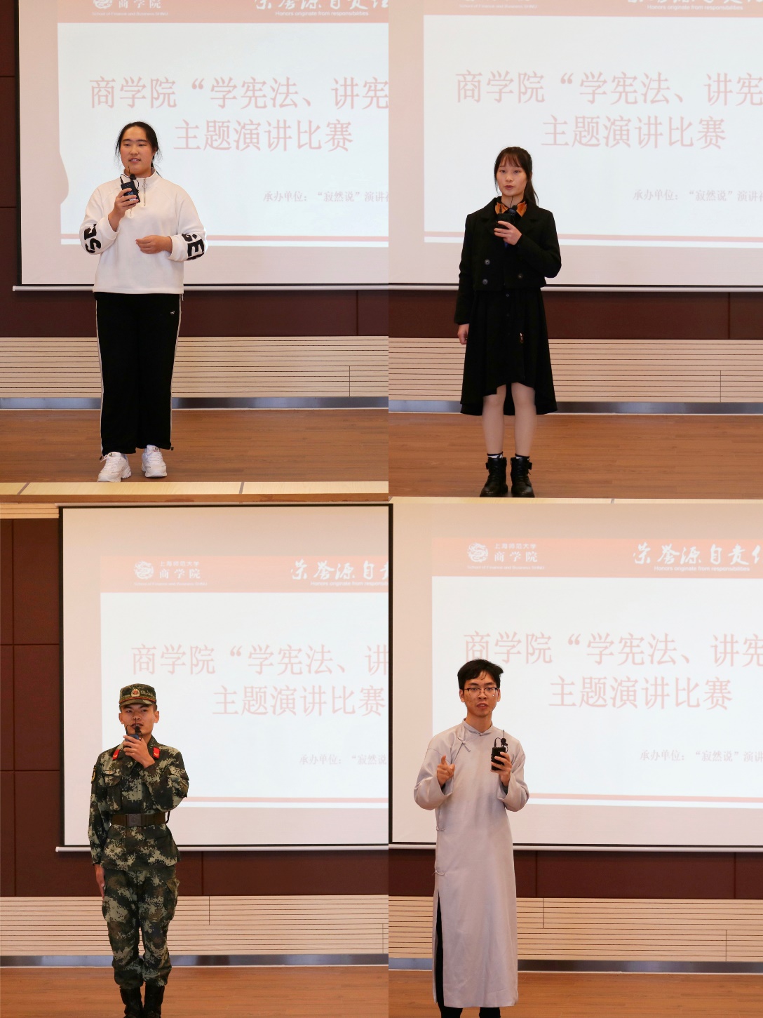 宪法是治国的基石,如何学好宪法并在此基础上讲好宪法,弘扬宪法精神在新时代尤为重要。对于宪法的宣传教育,习近平总书记曾指出,宪法的根基在于人民发自内心的拥护,宪法的伟力在于人民出自真诚的信仰。在比赛中,15位选手从历史、信仰、时代、家国等不同角度切入宪法主题,以青年视角谈对宪法的理解,用不同故事弘扬宪法精神,凸显了青年在新时代对宪法进行宣传教育号召的热切回应。商学院“学宪法,讲宪法”主题演讲比赛于11月17日在奉贤校区隆重举行。本次比赛共选取了来自不同学院的15名选手参赛,由商学院辅导员教师代表担任此次活动的评委。