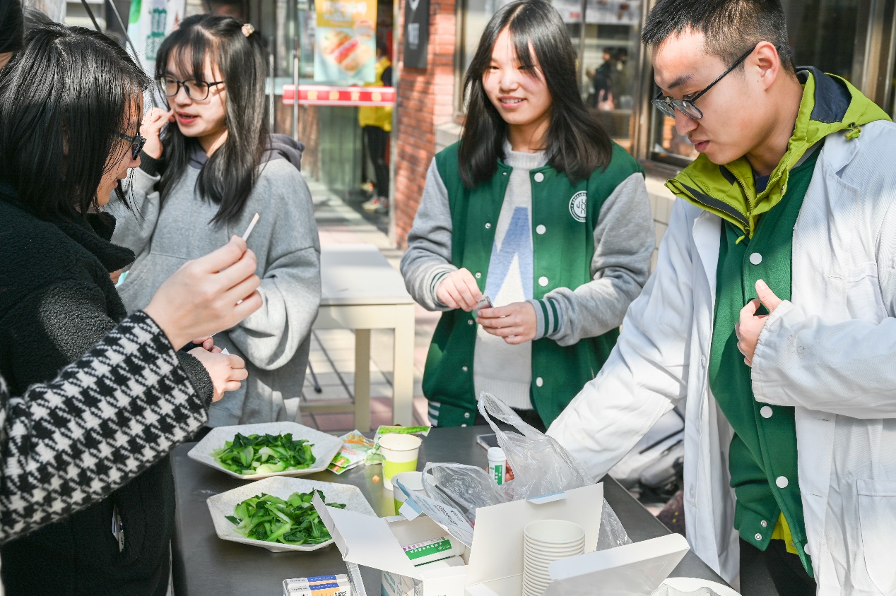 2021年11月24日(周三)11:00,为向全校师生普及生活中的食品科学知识, 营造良好的校园食品安全氛围,我院“安全新食代”科普宣讲队在玉兰苑餐厅中庭为同学们组织了一场“健康膳食守舌尖安全,食品科普伴你我同行”的科普活动。同学们对食品安全知识以及健康膳食又有了进一步的了解,还体验了妙趣多“滋”的实践活动。在日后的生活中,希望大家都能树立正确营养理念,养成良好饮食习惯,共同营造校园良好的食品安全氛围。