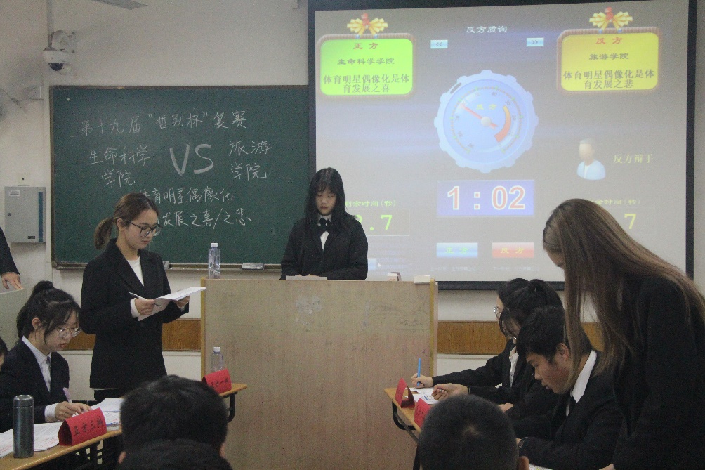 12月1日下午第十九届上海师范大学“哲别杯”辩论赛复赛在奉贤校区第二教学楼举行。本次比赛共分为A、B、D、E四个赛区,每一场比赛都十分的精彩。本次出席的评审裁判由2018级校辩论队顾问尹世纪,2019级校辩论队领队管世轩,2019级校辩论队顾问朱嘉煜等10位校辩论队的同学组成。此次,B、E赛区的比赛在13:00准时开始,A、D赛区的比赛在15:00准时开始。其中A赛区的辩题为“虚拟偶像/传统偶像更能满足当代人的需求”,由体育学院对阵环境与地理科学学院。双方在对虚拟偶像、传统偶像的定义上达成了共识,比赛火花迸发,针锋相对。最终获胜方为环境与地理科学学院(反方)。