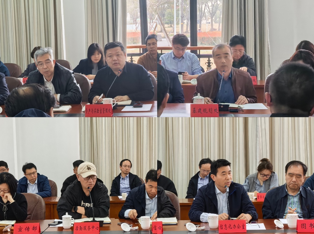 资产与实验室管理处处长王昀、基建规划处处长陆伟、信息化办公室主任顾益明以及后勤服务中心副主任郭文针对交流发言提及的分管工作做了一一回应。