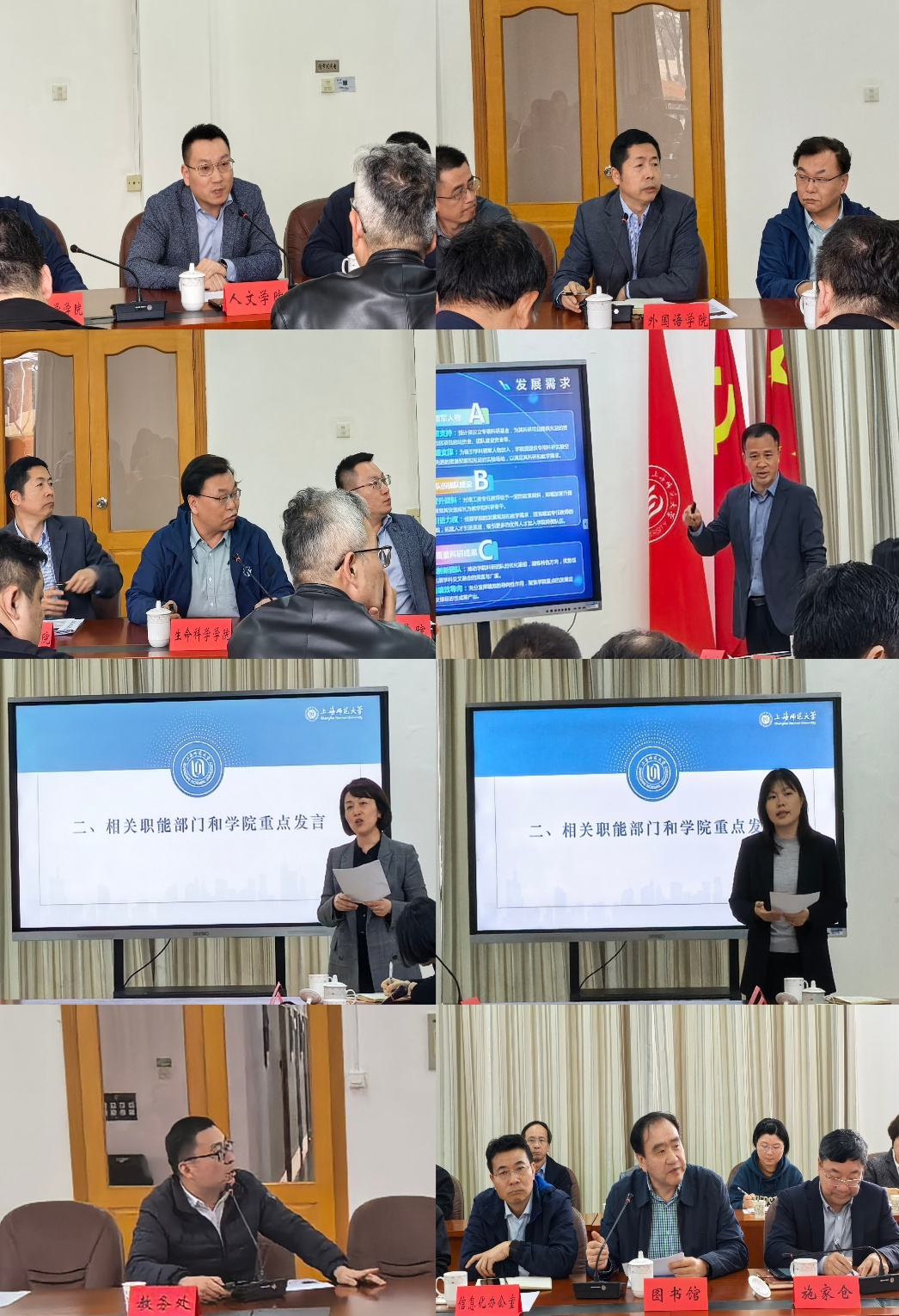 学工部(处)朱政部(处)长介绍学工部门以打造“有温度、有智慧、有活动”的学生成长生态圈为宗旨,从学生全周期培育的视角,对学校治理提升、育人提质、产教融合提出了协同需求,具体希望在推进空间优化与治理提升的基础上构建智慧型校园生活共同体,在五育融合创新实践的基础上共同打造浸润式的育人矩阵,在构建产教协同生态的基础上赋能高质量就业发展。学工部门将携手各部门回应学生期盼,重塑育人格局,破解就业痛点。校团委黄雨艳书记介绍奉贤校区校团委以“引领凝聚青年、组织动员青年、联系服务青年”为宗旨开展各项工作,助力校园文化繁荣和学生全面发展。校团委经过座谈走访等形式了解学生诉求,希望学校在社团活动空间供需平衡、校园文化活动的场地设施完善、学生活动区域的统筹规划方面提质增效,共同提升奉贤校区的综合发展能效。教务处副处长、招生办主任李钊辉介绍两校区本科办学概况、公共教学空间分布和使用趋势以及对在建项目的教学空间需求,教务部门希望学校建设更多环幕和研讨型的新形态智慧教室,升级公共教室教学设备,对接我市中小学教育智慧教室的相应条件,提升学生在校的适应度。同时针对教学场所功能性空间的拓展、教学设备的维保服务、教师的信息化培训和智能终端的联网介入都提出了保障需求。图书馆贾铁飞馆长介绍了两校区基本馆情,也反馈奉贤校区图文大楼面临如硬件设施老化、书桌书架陈旧、照明条件欠佳和电源无法上桌以及空间功能混杂等主要问题。图书馆建议学校提升图书馆空间供给和保障能力,扩容场地使用总面积指标数达到教育部普通本科院校标准,希望适时安排奉贤图书馆馆舍的整体大修升级,通过空间再造、照明更新、家具更换和桌面电源配置等切实手段提升人才培养的空间格局。