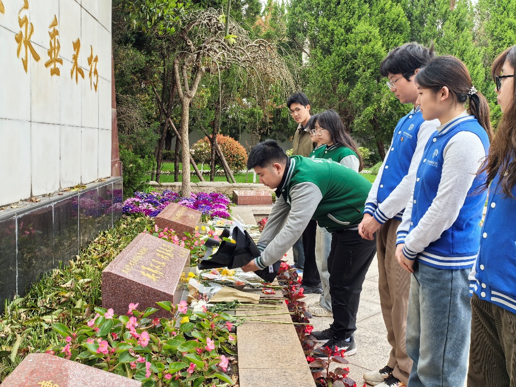 ★化学与材料科学学院 梨花风起正清明,白菊香凝祭英魂。为深切缅怀革命先烈,弘扬爱国主义精神,厚植家国情怀,3月30日下午2点,生命科学学院、化学与材料科学学院开展了“清明祭英烈”主题活动。生命科学学院辅导员刘洪洋老师、化学与材料科学学院辅导员许芯蕾老师带领入党积极分子导生、优秀学生代表共赴奉贤烈士陵园。