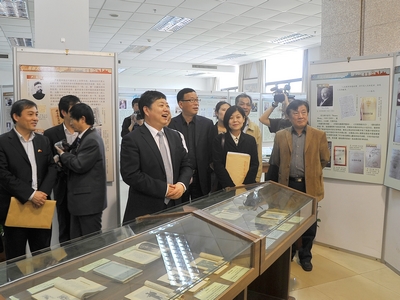 4月26日,2012上海师范大学“国际周”系列活动——“英国文学在中国”图书馆馆藏资料图片展在奉贤校区图书馆一楼展览厅开幕。英国驻沪总领事馆文化官员张大晟女士、校长张民选、副校长高建华,以及国际交流处、奉贤校区两委会和图书馆负责人出席开幕仪式。