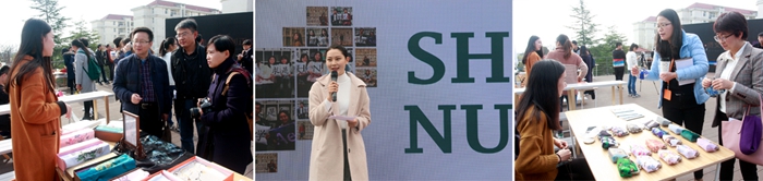 缘生文化、艺播人墙绘、彩虹君口金包、手绘丝巾、阿亮学长摄影工作室等学生创新创业项目和文创作品,以及易衡书社、花艺社、猗兰汉服社、女儿社和Godt乐高社等学生社团在开幕现场进行了展示,展现了文创团队作品和丰富的社团活动,也为师大学子提供了开办文创市集,进行文创体验,寻找文创合伙人的平台。师生们共同为象征大学生创新创业的文化创意树揭下帷幕,并一同参观了集·贤文创中心,体验学子的创新成果,感受学子的创业热情。