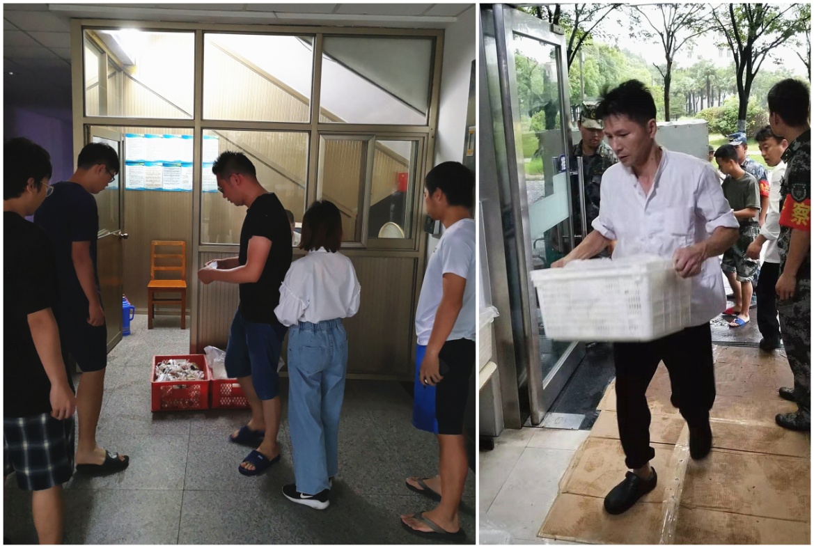 为确保留校学生人身安全,台风登陆前,学工部通过微信消息、张贴告示等形式对学生进行安全提醒;台风登陆后,学工部与与后勤服务中心协调合作,为留校学生提供送餐服务,避免学生冒雨出行。