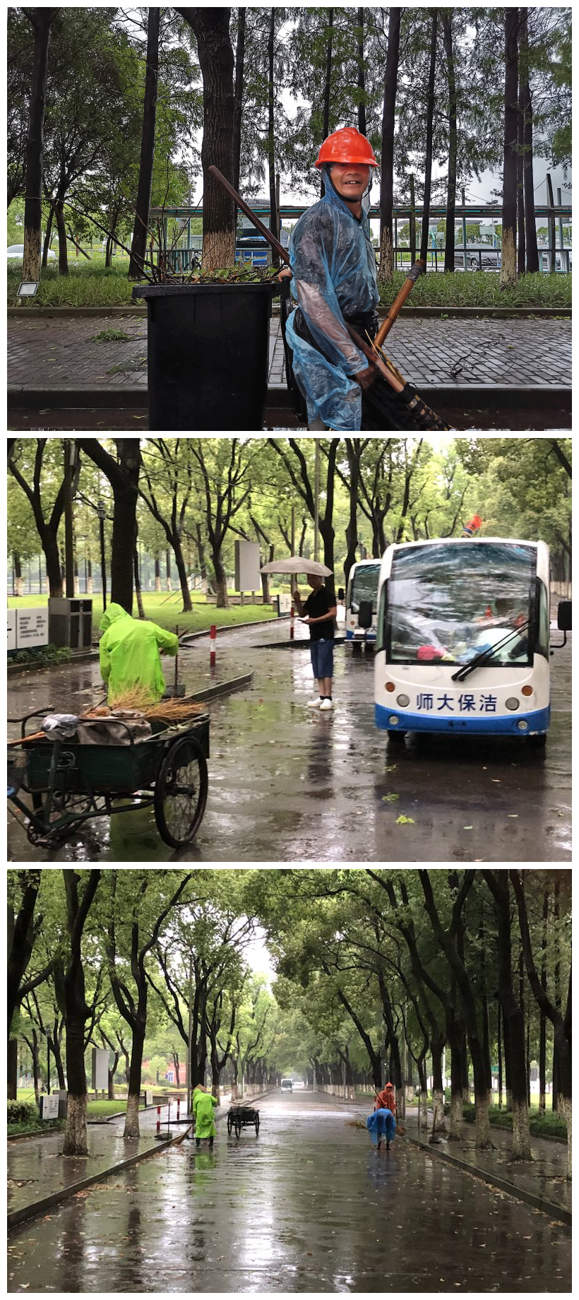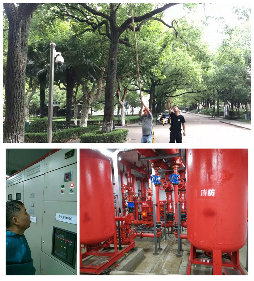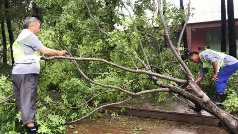 后勤服务中心组织员工及时清理枯枝断木以防道路积水;资产与实验室管理处和保卫处等部门严密监控泵站、泄洪闸等防汛设施,确保其正常运转……通过近两个昼夜的紧张防范和应急处置,整个校园秩序井然。
