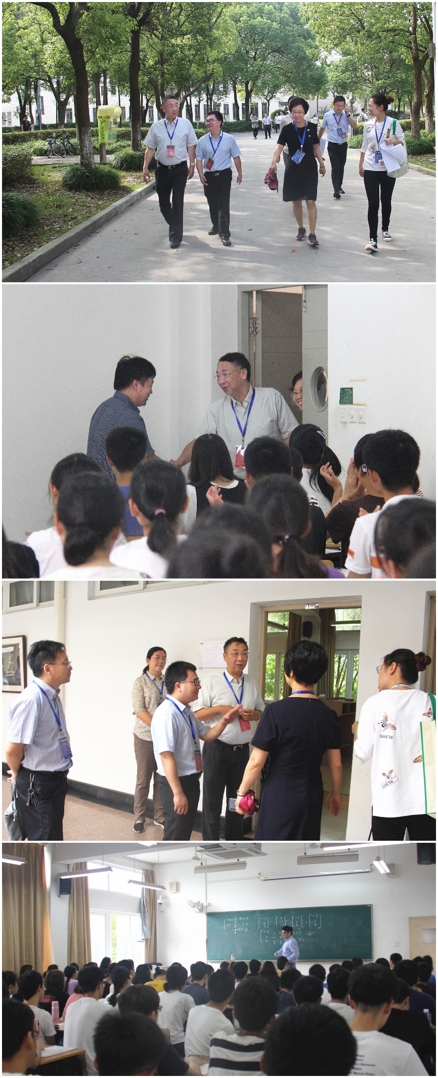 ★ 新学期开学 9月9日是新学期开学正式上课第一天,校长朱自强、副校长李晔带领学校办公室、教务处、学生工作部、保卫处、资产与实验室管理处、后勤服务中心等部门相关负责人巡视了奉贤校区三教、四教、五教的上课情况。在学校各单位的密切配合下,开学第一天教学秩序井然。