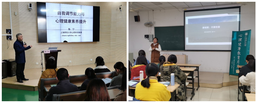 12月4日和5日,奉贤校区分别举办以“自我调节能力和心理健康素养提升”和“要相爱不要伤害”为题的心理健康讲座。近400名学生聆听了两个讲座。