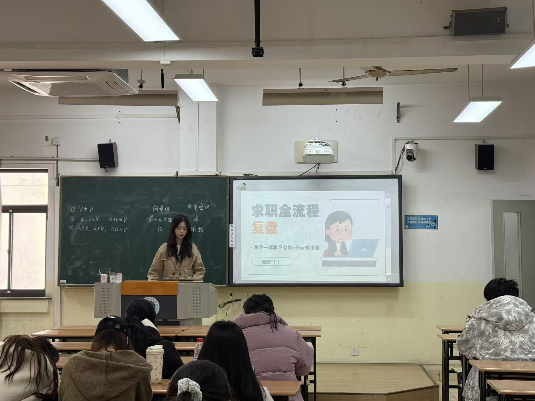 ★哲学与法政学院 12月10日,青竹课堂第七讲于奉贤校区第四教学楼A302教室顺利开展。本次简历撰写与面试通关课程由颜珊妮同学主讲,主题聚焦“求职收尾与复盘:大学生面试后跟进及全流程经验优化”,从“求职收尾的黄金价值”、“面试后跟进的三步法”、“求职全流程复盘”、“总结干货”等多个方面进行了详细的讲解,帮助同学们更好地掌握求职面试后复盘的技巧与方法,为今后能够拿下自己心仪的offer做好准备。