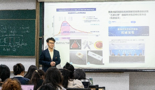 ★化学与材料科学学院 5月6日,“学生讲课程思政”第二季活动走进学院“入党积极分子培训班”的课堂,两位学生讲师为培训班的同学们带来了别开生面的一课。他们立足高中教材中的知识点,通过自信而生动的讲述,带领入党积极分子学习了胶体金、氯碱工业等相关化学知识及重要应用,引导同学们肩负起“好化学,助力科技强国”的时代重任。